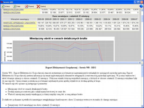 raporty zwrotne ABD - każda apteka przekazująca dane do Aptecznego Banku Danych może sprawdzić, jak wygląda sytuacja apteki na tle innych aptek w regionie. Na podstawie takich danych można podjąć odpowiednie działania mające na celu poprawę sytuacji ekonomicznej apteki,