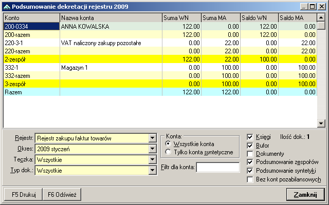 Bufor - stanowi przedsionek księgi głównej przechowujący wszystkie dokumenty zadekretowane na odpowiednich kontach.