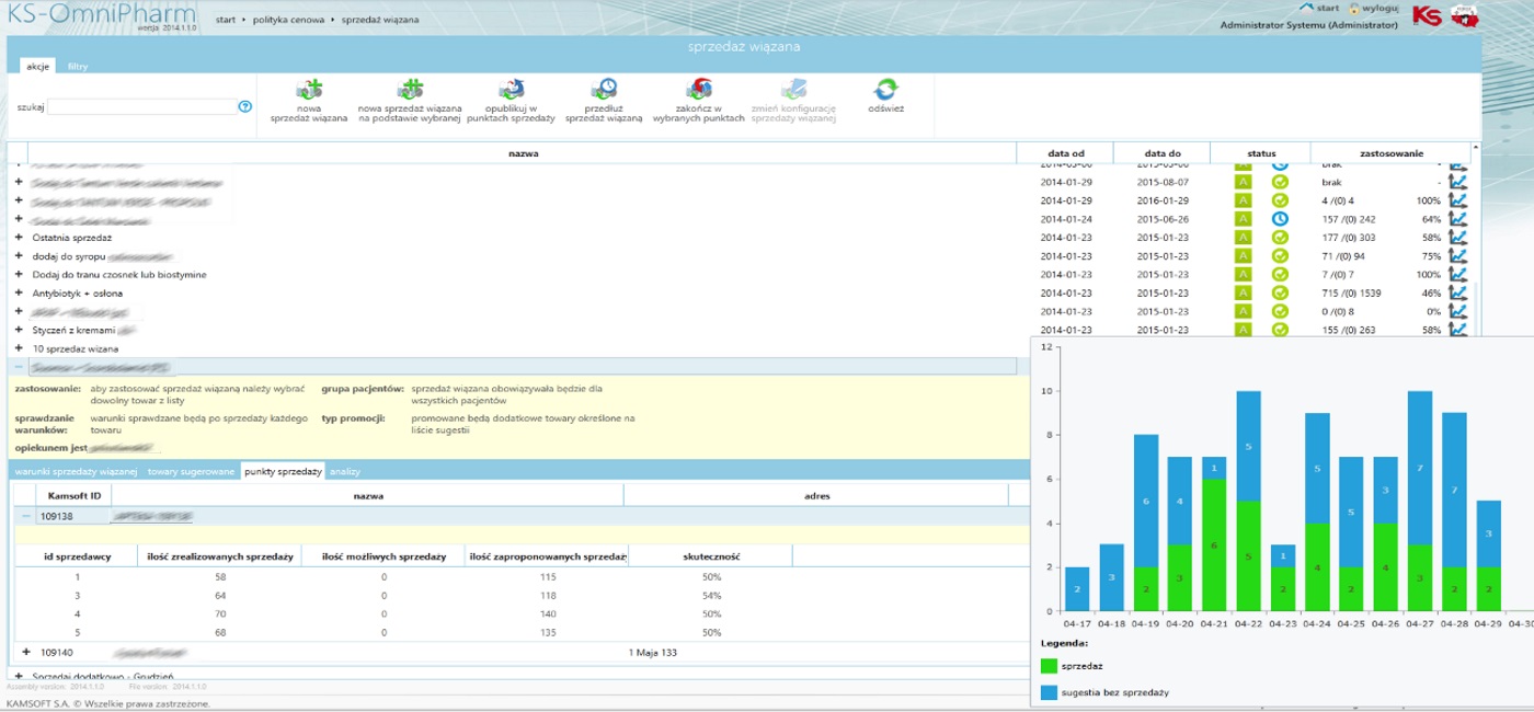 KS-OMNIPHARM jest kompleksowym rozwiązaniem wspomagającym pracę osób zarządzających siecią aptek w realizacji procesów biznesowych. Na bazie ogromnego doświadczenia firmy KAMSOFT w projektowaniu i realizacji systemów dostarczanych na rynek farmaceutyczny, powstał system informatyczny cechujący się nowoczesnością, ergonomią pracy oraz umożliwiający szybkie i trafne podejmowanie decyzji biznesowych.
