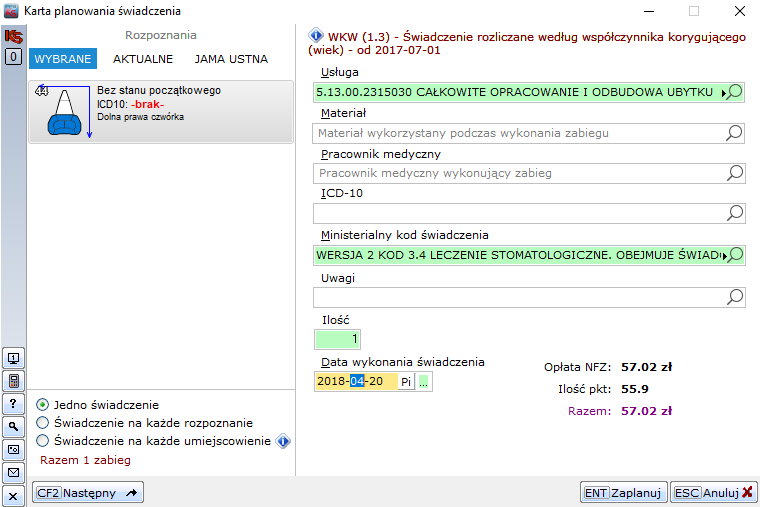 Moduł 55–Stomatolog służy do kompleksowej rejestracji i obsługi świadczeń stomatologicznych w celu wygenerowania