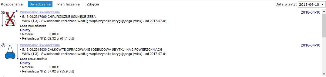 Wspiera w pełni procesy związane z rejestracją rozpoznań, przeglądów stanu uzębienia czy też rejestracją usług na poziomie