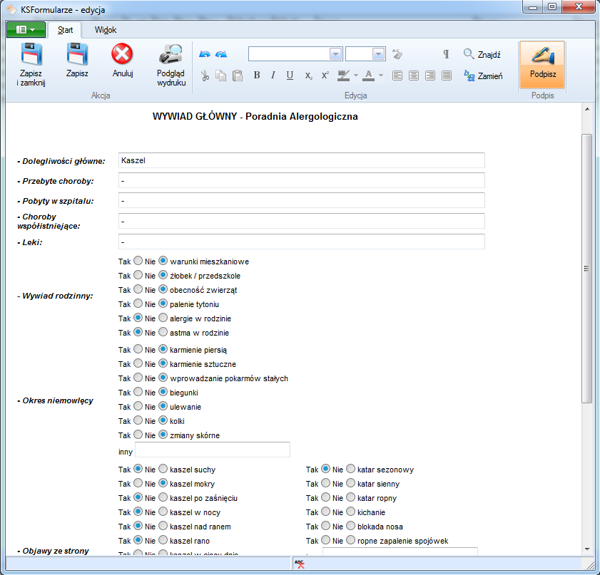 - KSIĘGA GŁÓWNA - moduł ten pozwala na prowadzenie rejestru wszystkich przyjętych pacjentów oraz udzielonych im świadczeń w Księdze Głównej, Rejestrze Poradni, Księdze Pracowni Diagnostycznej lub Zabiegowej,