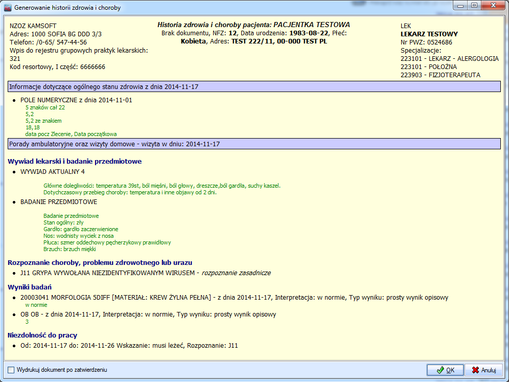 baza adresowa Oddziałów Narodowego Funduszu Zdrowia, baza adresowa kraju. System przygotowany jest również do obsługi bazy chorób zgodnej