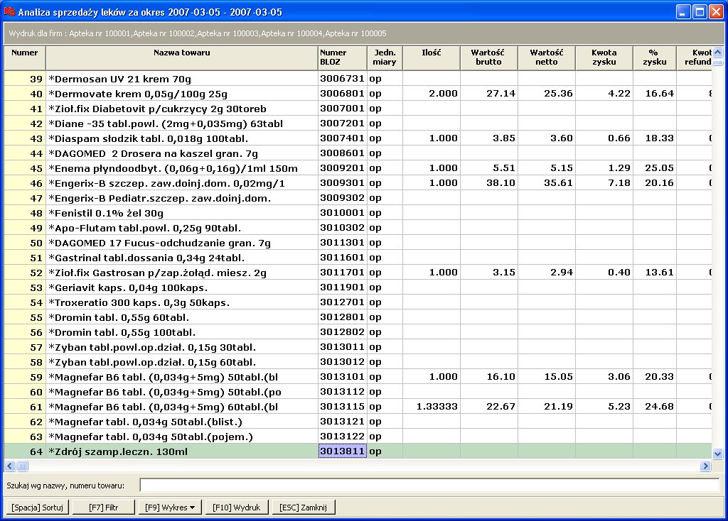analizy porównawcze punktów obrotu detalicznego – porównywanie pojedynczych aptek (sklepów) lub też dowolnych ich grup;