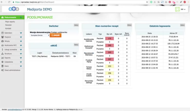 - szybkie wystawianie recept i możliwość ich ponawiania - dostęp do bazy leków (z poziomem refundacji, interakcjami i działaniem) |