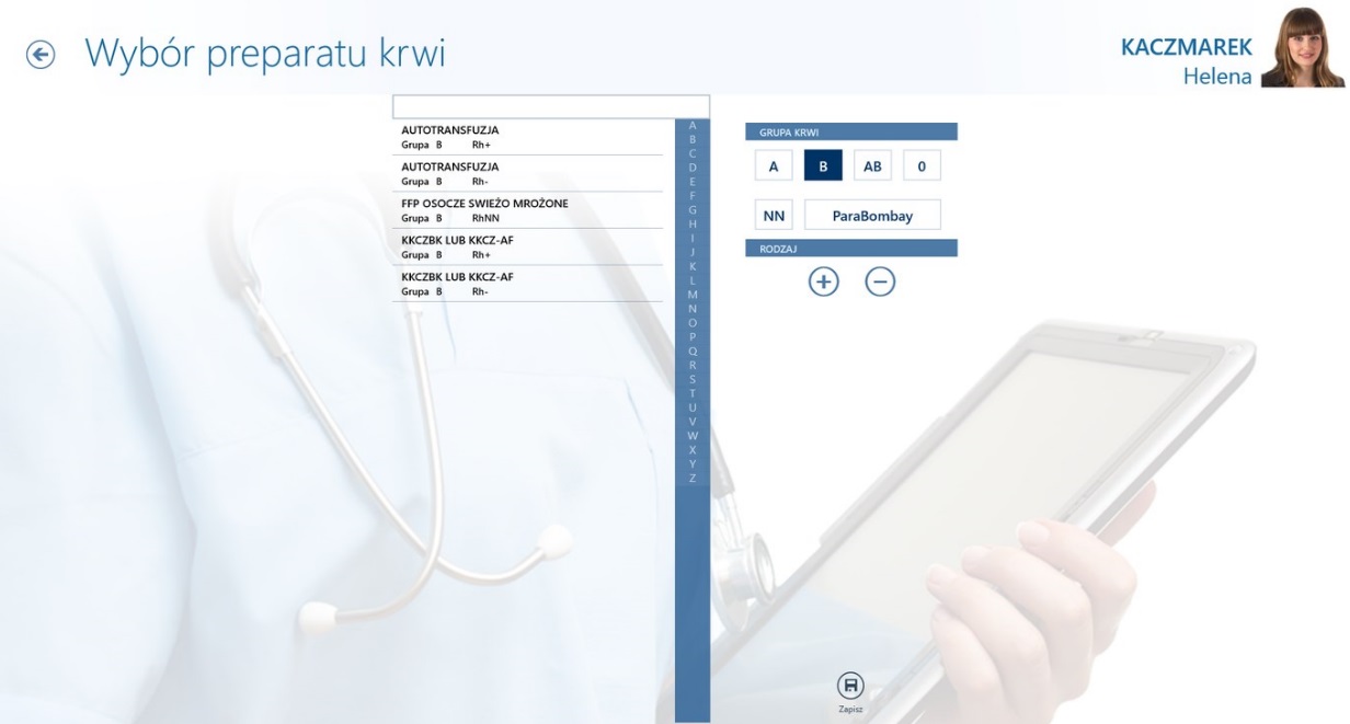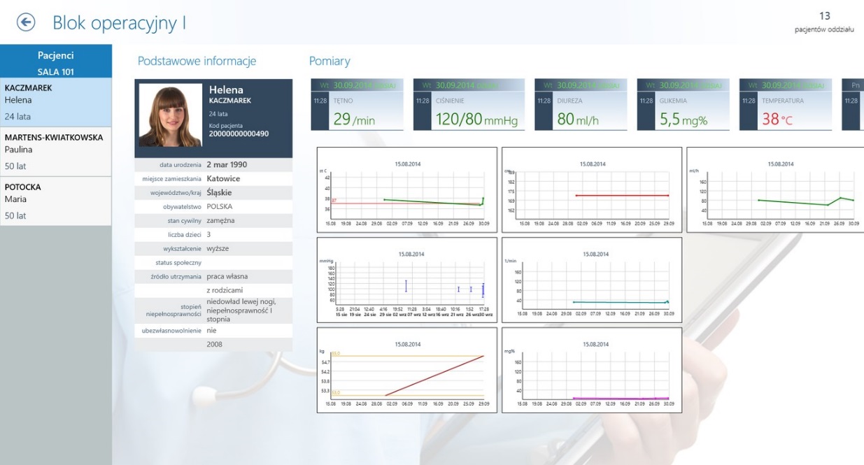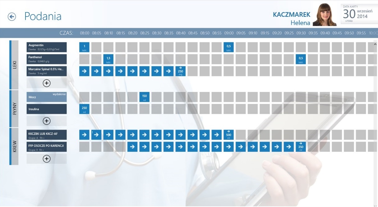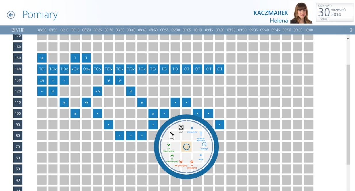 Aplikacja pozwala personelowi na przeglądanie dokumentacji medycznej pacjenta, przegląd historii leczenia, rejestrowanie podań leków, preparatów krwi, parametrów związanych z oddychaniem, oraz rejestrację w formie graficznej informacji o zabiegu (intubacja, ciśnienie, znieczulenie itp.). To wszystko bez użycia papieru lub tradycyjnego stanowiska komputerowego. Wszystkie czynności rejestrowane są na tabletach wyposażonych w matrycę dotykową i system Windows 8 lub nowszy.
