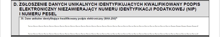 Część D. Zgłoszenie danych unikalnych identyfikujących kwalifikowany podpis elektroniczny niezawierający numeru identyfikacji podatkowej (NIP) i numeru PESEL