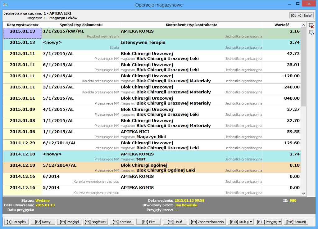 możliwość przeprowadzenia dowolnych operacji związanych z magazynem leków (poprawa bazy leków, przegląd i poprawa kart zakupu, zwroty dostaw, analiza stanu magazynowego, wstrzymania leków),