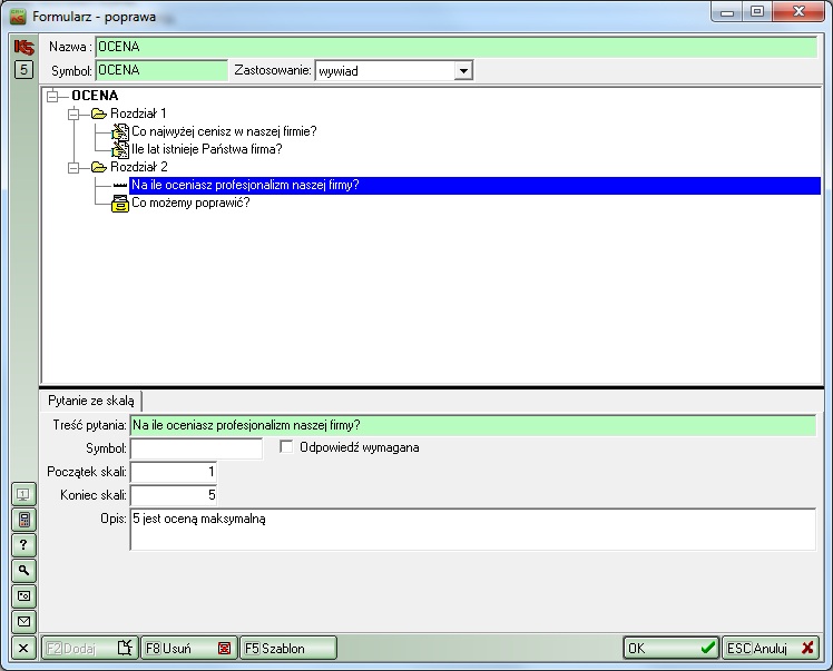 Definiowanie dowolnych formularzy (wzorów ankiet);