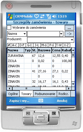 - Część mobilna, specjalistyczna aplikacja działająca na urządzeniu mobilnym, wykorzystywana przez przedstawiciela w terenie.