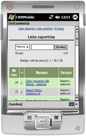 - System udostępnia raporty i zestawienia dotyczące pracy przedstawicieli;