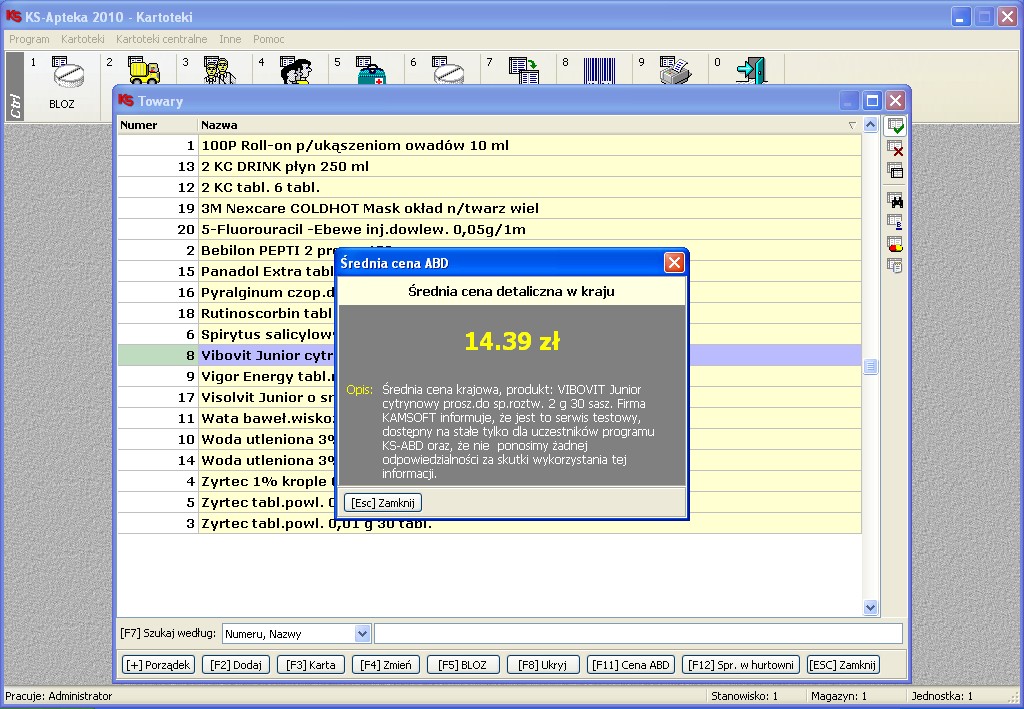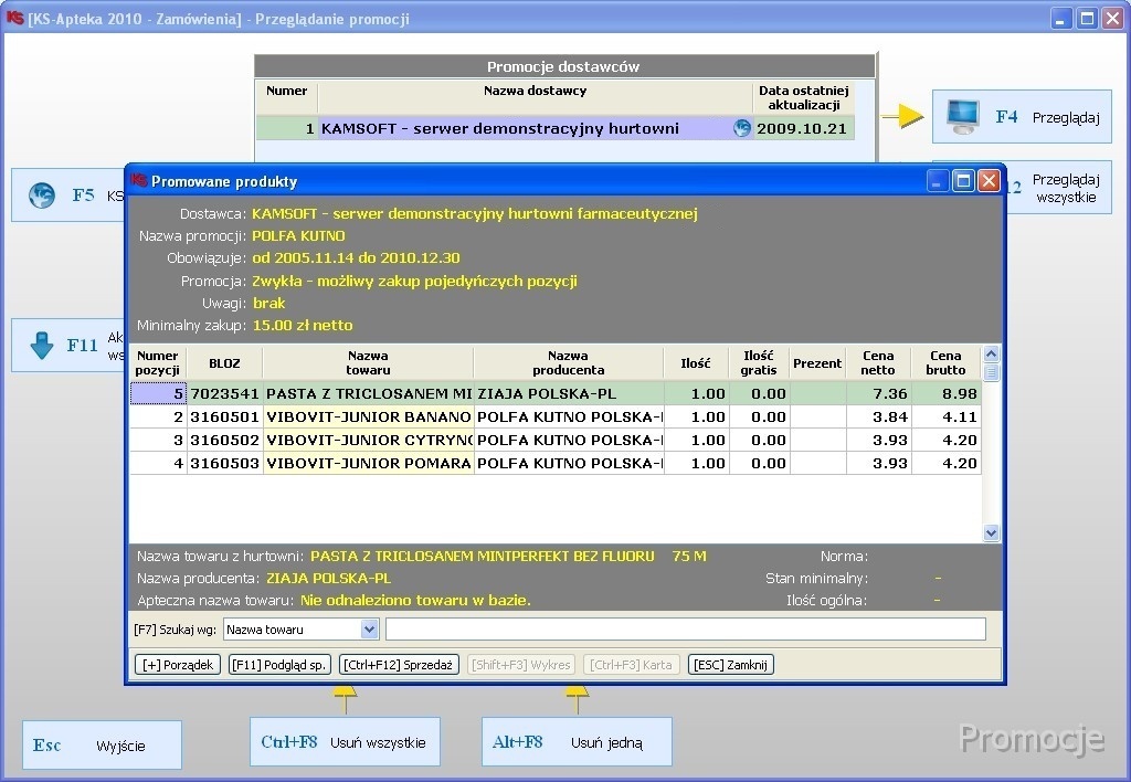 zapytanie o stan i cenę produktu - sprawdza u dostawcy aktualną cenę towaru, jego dostępność oraz termin dostawy. Funkcja ta umożliwia odpytanie wielu hurtowni jednocześnie, co znacznie upraszcza wyszukiwanie leku oraz wybór najatrakcyjniejszej oferty. Farmaceuta, przy okienku kasowym, może powiadomić pacjenta czy i kiedy lek będzie dostępny w aptece. Takie rozwiązanie wpływa na korzystny wizerunek apteki.