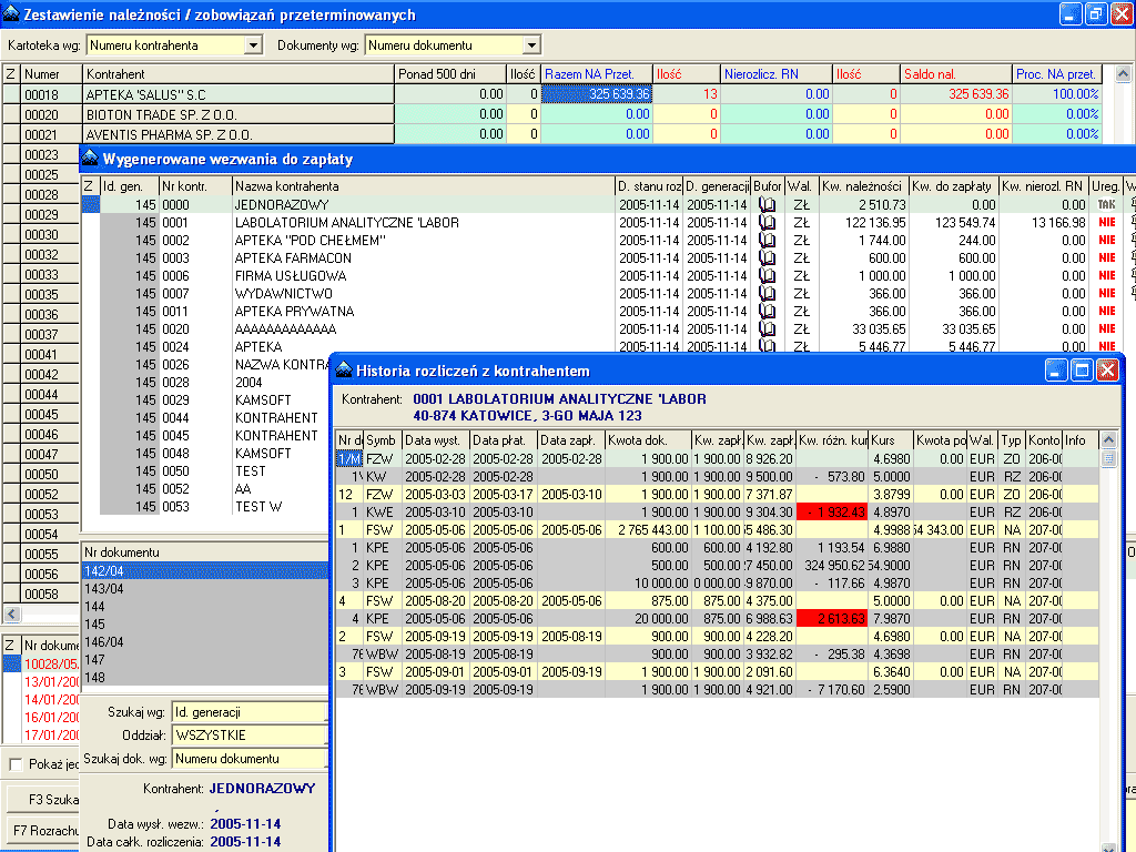 - •zestawienie należności i zobowiązań z widoczną ilością dni po terminie zapłaty dokumentów, zestawienie można wydrukować pod postacią Wezwania do zapłaty,