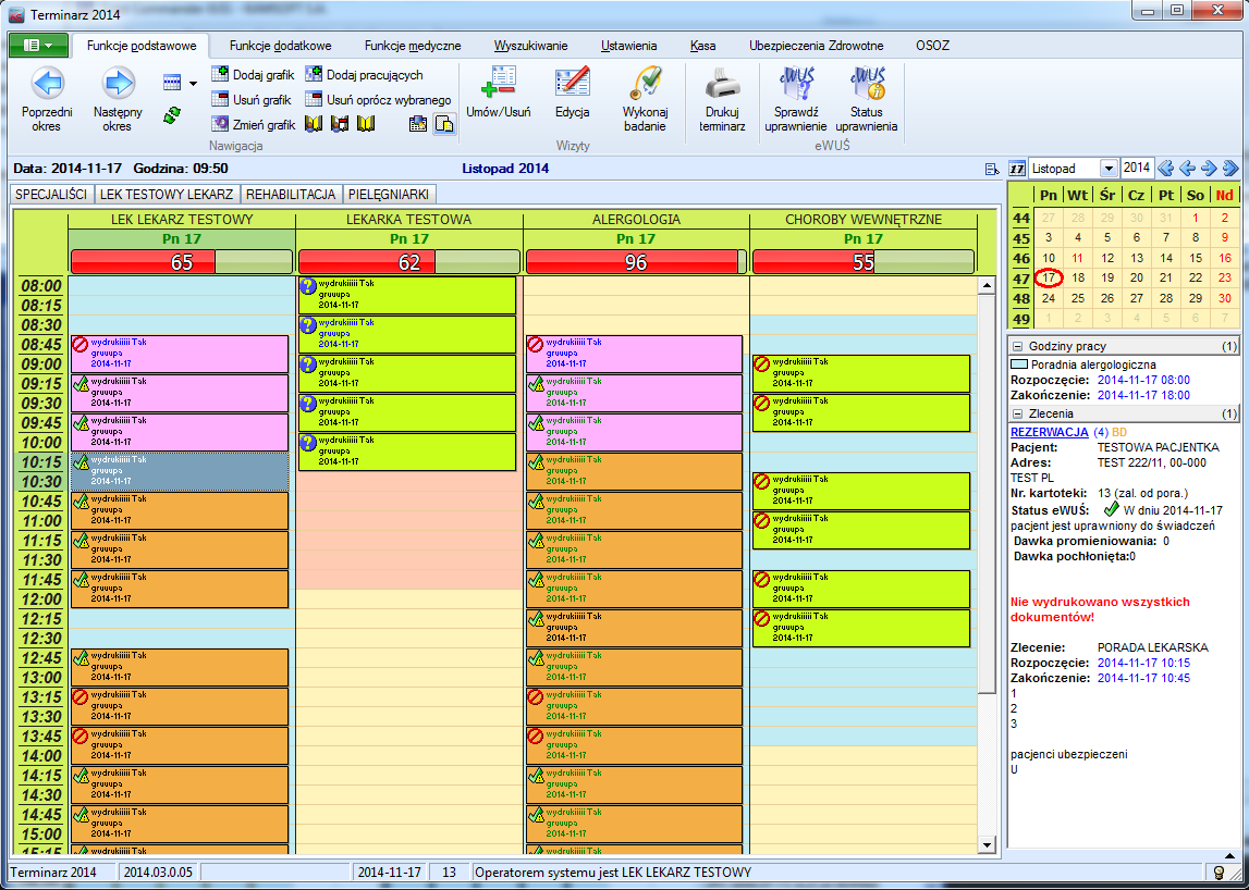 •wydruk dokumentów takich jak: recepty, druki ZUS ZLA, wyniki badań, skierowania, zaświadczenia,