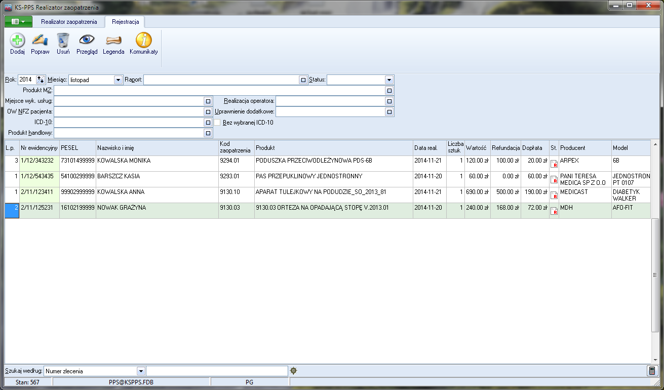 POZ – moduł pozwalający na rejestrację świadczeń Podstawowej Opieki Zdrowotnej w celu późniejszego automatycznego generowania odpowiednich zestawień okresowych.