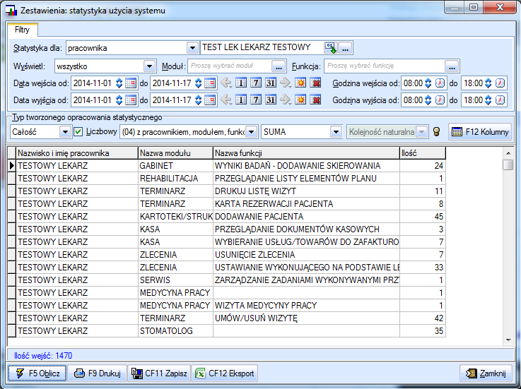 - ZESTAWIENIA - dzięki rozbudowanym możliwościom generowania różnych zestawień (ilości i rodzajów udzielonych świadczeń, zestawień finansowych, kosztowych itp.) moduł pozwala na szybkie uzyskanie informacji o wynikach działalności jednostki medycznej,