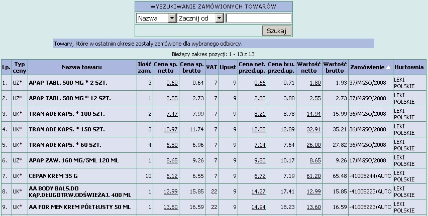 aptek i hurtowni farmaceutycznych) jest możliwość wglądu w listę towarów