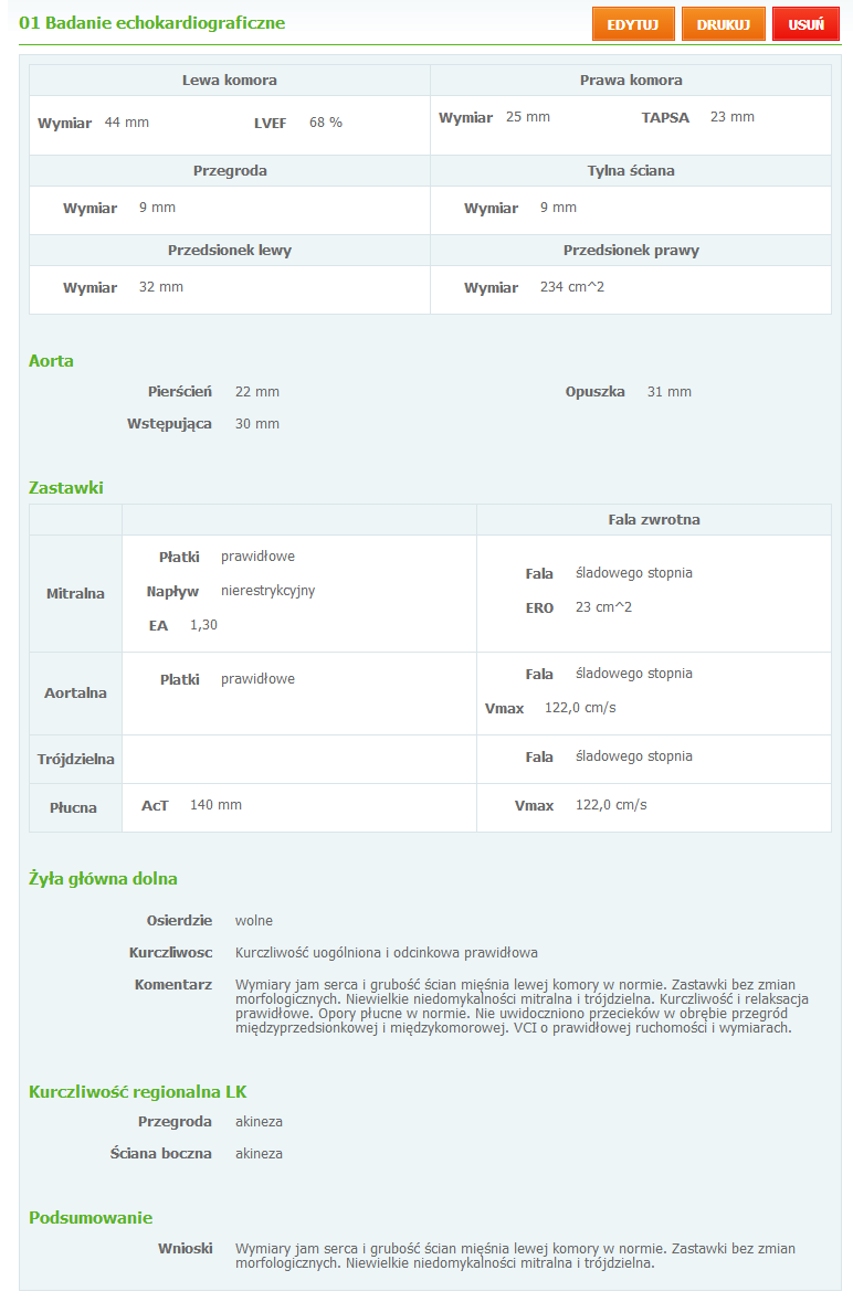 - zlecenie badań w trakcie wizyty - automatyczny odbiór wyników i zapis wyników w historii choroby |