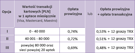Proponujemy Ci zamianę obecnego terminala płatniczego oraz integrację urządzeń płatniczych z programem aptecznym. Wraz z nowym rozwiązaniem dostępne są bardzo atrakcyjne opłaty prowizyjne.