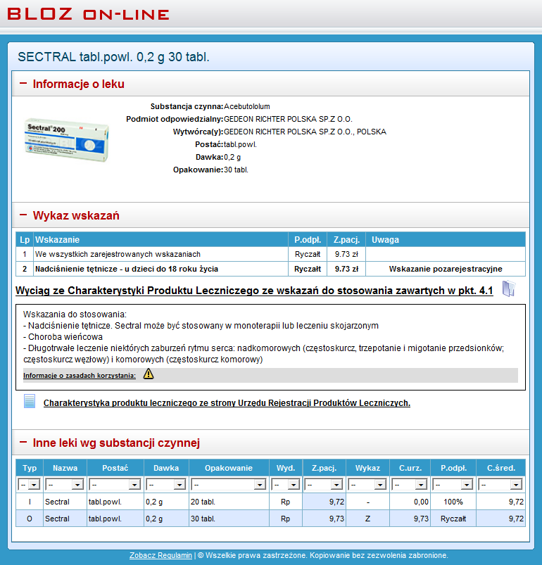 Pragnąc wspomóc lekarzy i farmaceutów w dostępie do pełnych informacji o leku, zwracamy uwagę na moduł odpłatności oraz BLOZ on-line, w którym znajdują się wskazania kliniczne zapisane w charakterystyce produktu leczniczego.