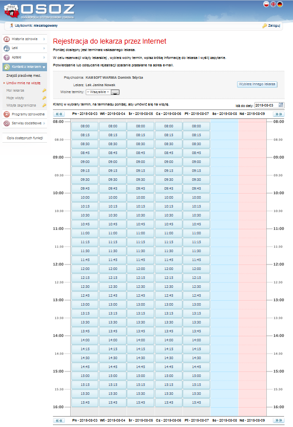 Wyróżnienie typów terminów (np. POZ, prywatne itp.).