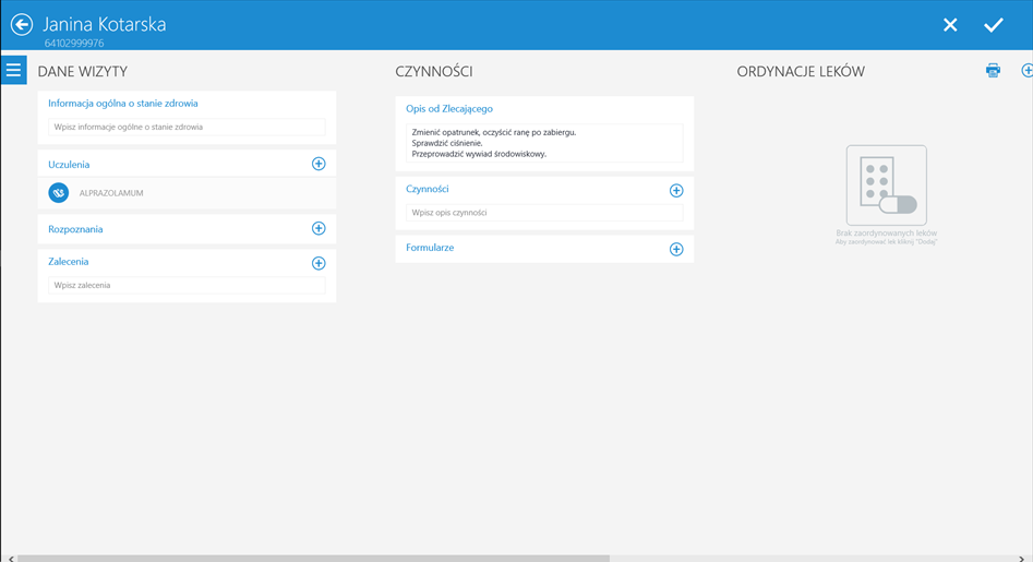 Wizyta Pielęgniarska rozszerza obsługę wizyt pielęgniarskich, wprowadza możliwość pracy w terenie, nawet w sytuacji braku dostępu do Internetu. Aplikacja dostępna jest na tabletach i komputerach z systemem operacyjnym Windows, Android i Apple iPad. Do korzystania z aplikacji konieczne jest posiadanie konta w systemach placówkowych (KS-SOMED, SERUM albo KS-PPS, a także, po dostosowaniu, do każdego innego systemu) albo uruchomienie nowego konta w SERUM.