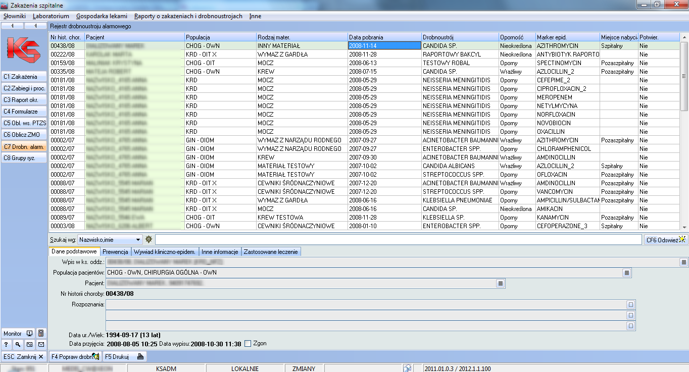 System informatyczny aktywnej analizy zakażeń szpitalnych